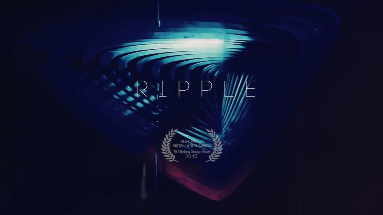 Situated in the staircase of an industrial architecture space in Beijing’s 751 art district, Ripple is a sequence of kinetic hanging installations developed by Momentum7. Using luminous lighting effects, etched metal and motion, Ripple comes alive as it reacts with its surrounding environment. The viewer is fully immersed into the experience as each metallic structure mimics the contours of the cylindrical tank in which it’s placed. Together with the pulsating reflections of the light and metal, a sense of endless perspective and motion is created from within.